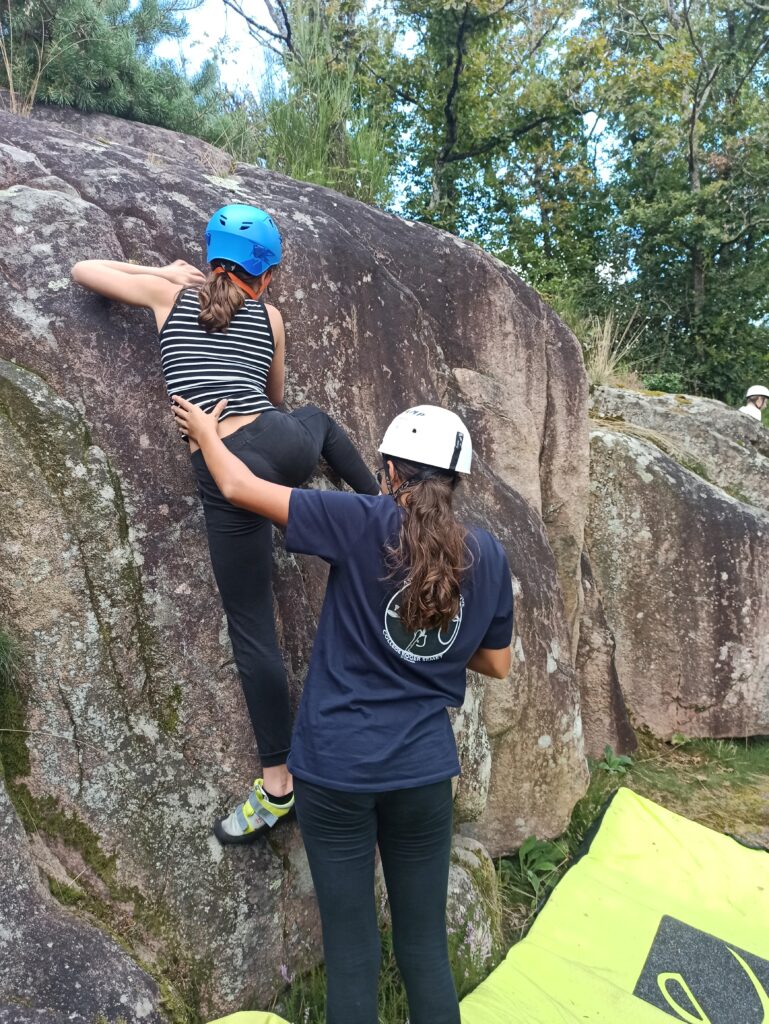 Cette pratique en extérieur sur des blocs naturels est un moment de cohésion, nécessaire à la pratique de cette activité à risque.
